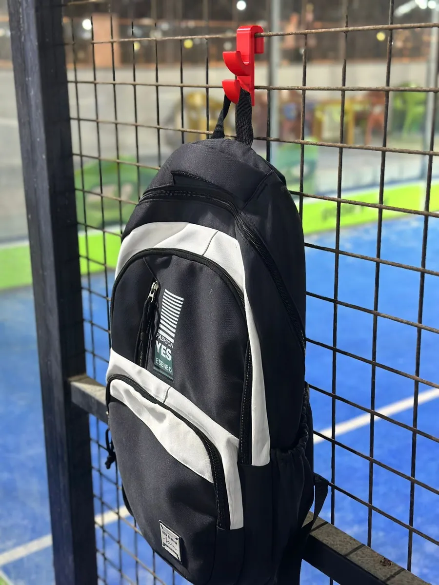 Heavy-duty 3D printed hook designed to clip onto padel court fences. Keeps your bag and gear off the ground securely and conveniently.